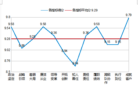 横向对比直观的数字得分和排名,方便领导一眼看出整个公司领导干部的排名情况。